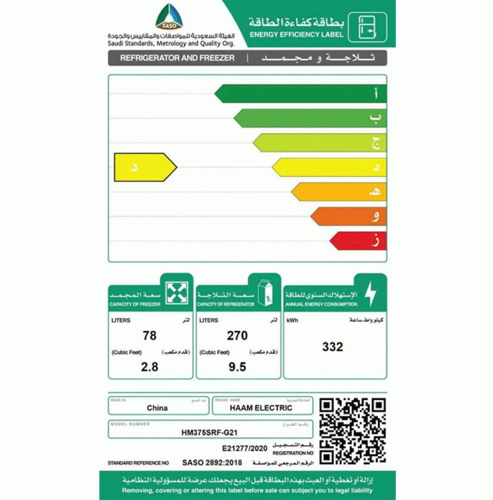 - الأبعاد : 170 سم * 68.5 سم * 59.5 سم